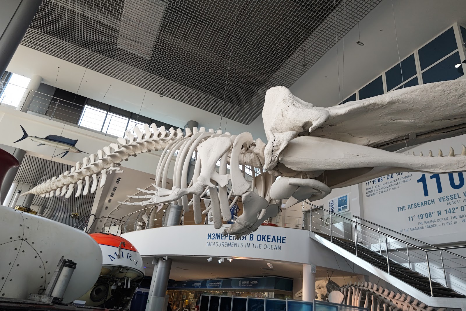 В главном корпусе разместилась потрясающая коллекция морских обитателей — от крошечных организмов до гигантского 16-метрового скелета кашалота. Дети будут в восторге от аквариумов с живыми акулами, морскими звездами и яркими карпами кои. Особый интерес вызывает экспозиция исторических моделей кораблей.